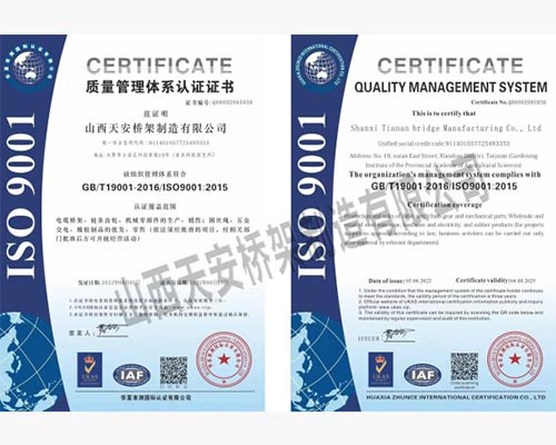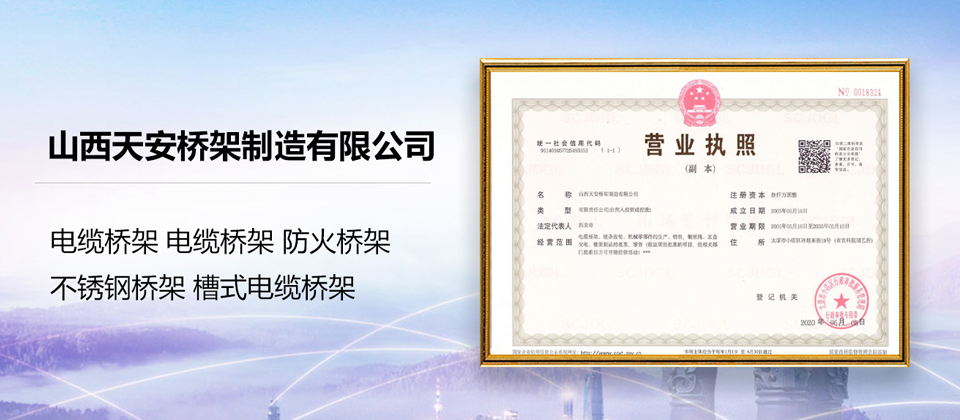 山西天安橋架制造有限公司是一家生產電纜橋架、母線槽的大型廠家,主要生產:槽式橋架、托盤式橋架、梯級式橋架、大跨距橋架、母線槽有空氣型、密集型、耐火型、鋁合金等以及通風管、可根據客戶要求定制各種型號各種規格,表面處理有熱鍍鋅、防火噴塑、防火漆、熱鍍鋅等,產品廣泛應用于石油、化工、治金、電力、紡織、通訊、高層建筑等各個領域。產品具有外形美觀,耐腐蝕性強,安裝靈活方便,品種齊全等特點。